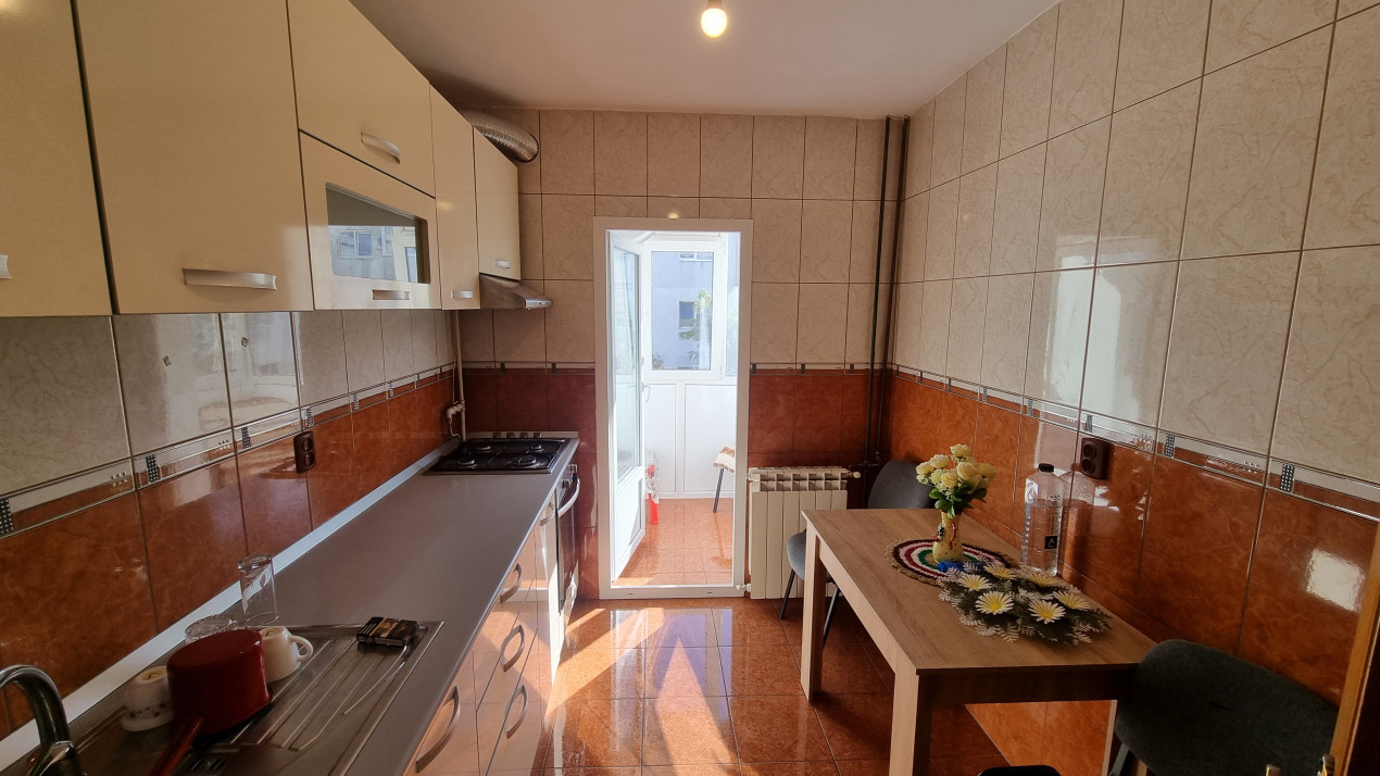 Dotari: gresie, faianta, parchet laminat, usa metalica la intrare, usi din MDF la interior, tamplarie PVC cu geamuri termopan, calorifere din aluminiu, izolat exterior, separatie de gaze pe scara blocului, mobilier si electrocasnice la bucatarie, dressing pe hol.