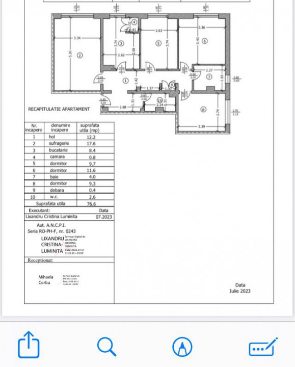 Imobilul este compus din sufragerie, trei dormitoare, bucatarie, doua bai, hol lung cu dressing si debara. Nu are imbunatatiri si necesita renovare.