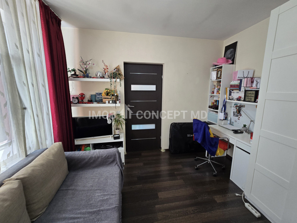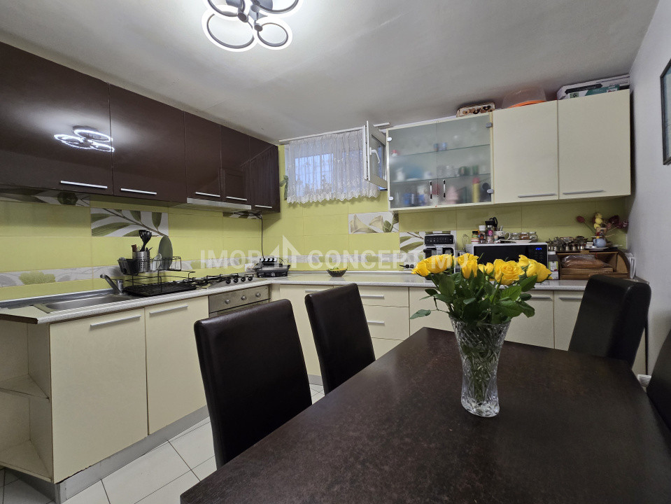 Locuința este dispusă pe o suprafață utilă de 69 mp (suprafață construită 87 mp) și este compartimentată practic: 3 camere luminoase, 2 holuri, bucătărie, baie și 3 intrări ce adaugă funcționalitate și accesibilitate.