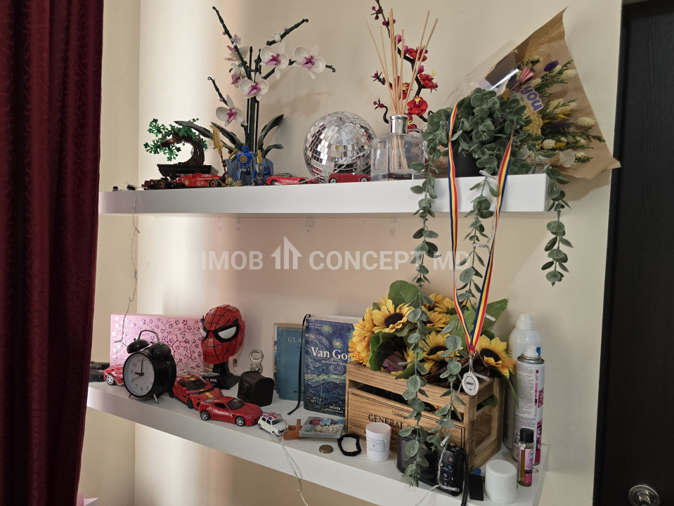 Dotari interior: gresie, faianta, parchet laminat, usi din MDF interior de buna calitate, centrala termica, calorifere din aluminiu, Tamplarie PVC cu geamuri termopan, mobilier, electrocasnice.