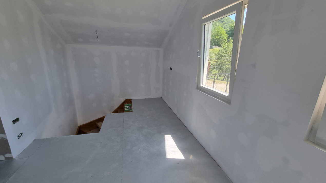 Imobilul este nefinisat si este construit in anul 2023, cu regim de inaltime P+M, cu fundatia din beton armat, structura casei din metal cu panouri sandwich, peretii din BCA, mansarda din lemn, izolata cu Polistiren de 10mm la exterior, acoperis din tabla Weterbest de 5,5 mm, imprejmuit cu gard de sarma pe o latura iar pe cealalta latura din lemn.