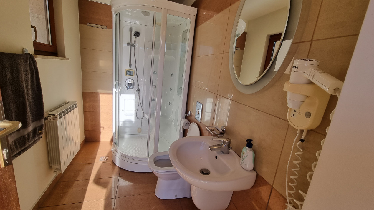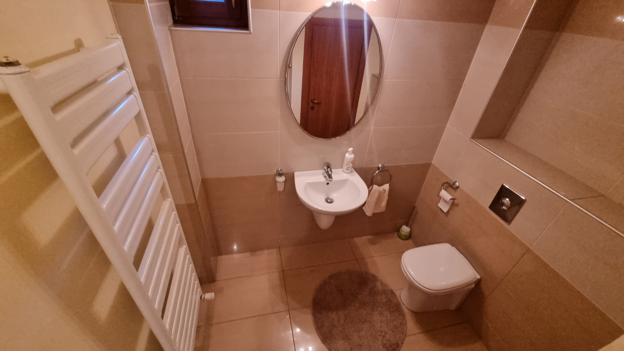 Dotari: gresie, faianta, parchet din lemn masiv, usa metalica la intrare , usi din MDF la interior, tamplarie lemn de Meranti cu geamuri termopan, incalzirea se face la centrala termica proprie, calorifere din aluminiu, aparate aer conditionat in fiecare dormitor, mobilier si electrocasnice, interfon, balustrada din inox la toata terasa, copertina electrica la terasa cu senzori de vant, garaje si porti actionate electric cu telecomenzi, izolata exterior. Imobilul dispune de toate utilitatile: apa, gaze, curent, canalizare.
