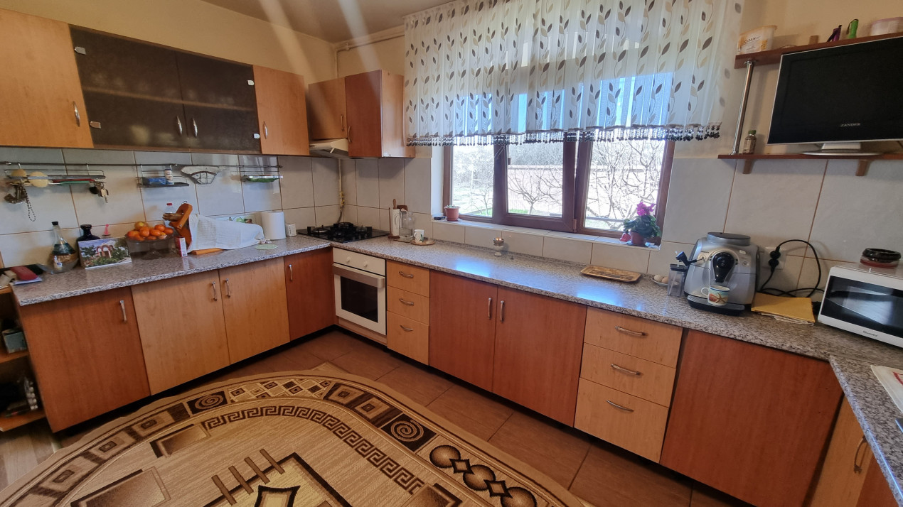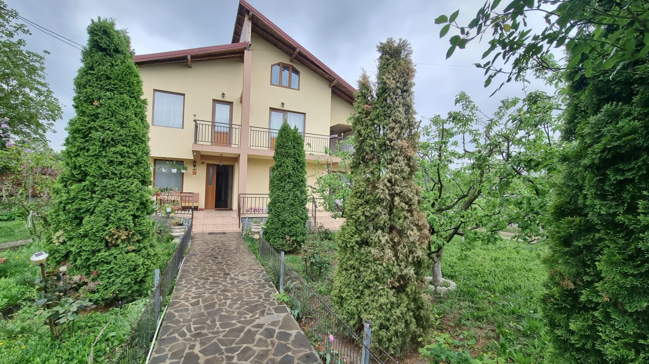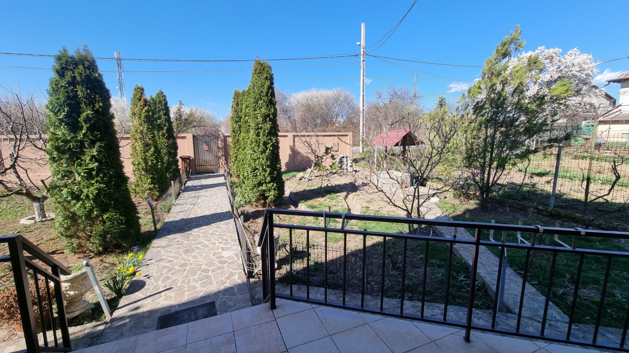 Dotari exterioare: curte betonata si pavata, terasa acoperita si placata cu gresie de exterior, balustrade din fier, vopsea decorativa, usa PVC, curtea este amenajata cu arbusti si pomi fructiferi, fantana cu acoperis, leagan, etc.