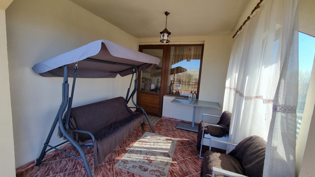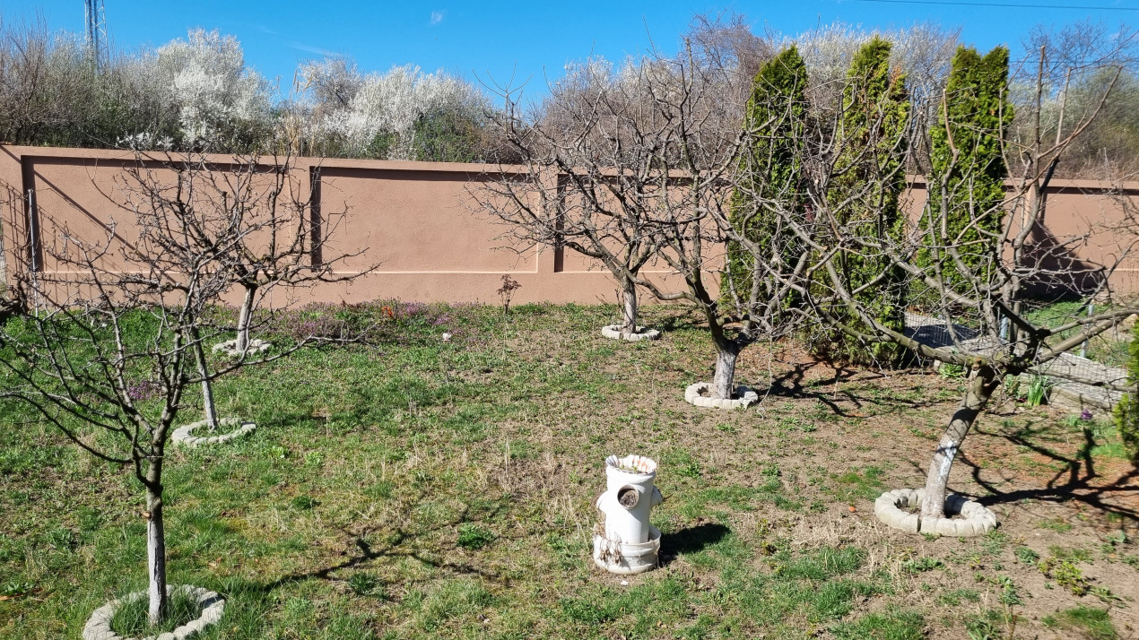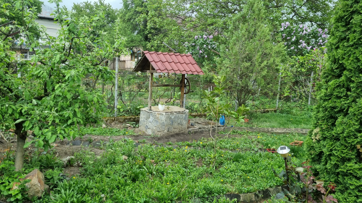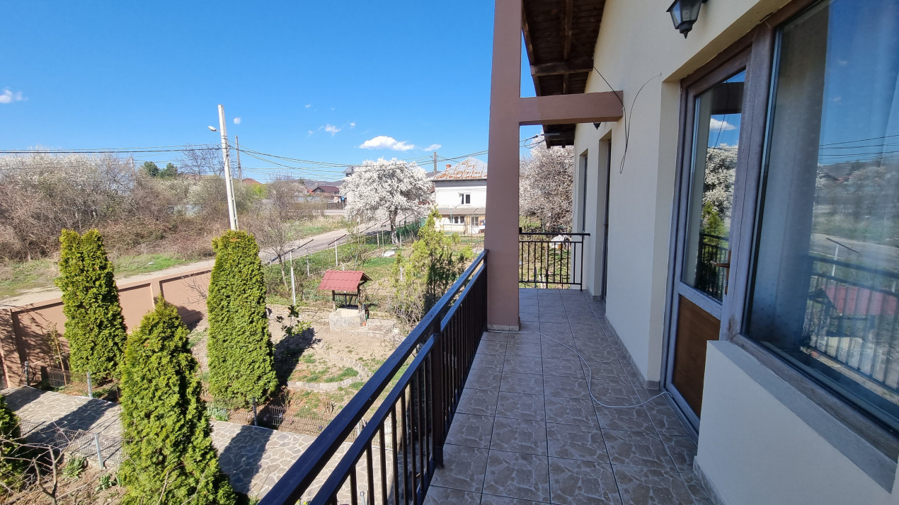 Dotari exterioare: curte betonata si pavata, terasa acoperita si placata cu gresie de exterior, balustrade din fier, vopsea decorativa, usa PVC, curtea este amenajata cu arbusti si pomi fructiferi, fantana cu acoperis, leagan, etc.
