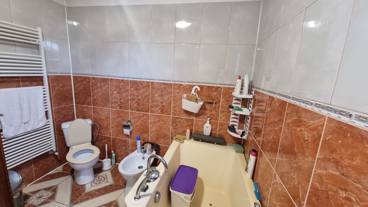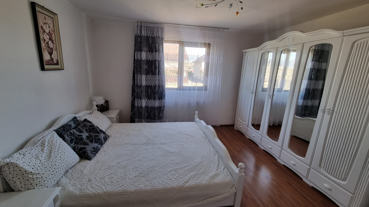 Dotari interioare: gresie, faianta, parchet laminat, tamplarie PVC cu geamuri termopan, usi interioare MDF poloneze, doua centrale termice cate una pe fiecare nivel, obiecte sanitare, parchet laminat, scara interioara, mobilier si electrocasnice, etc.