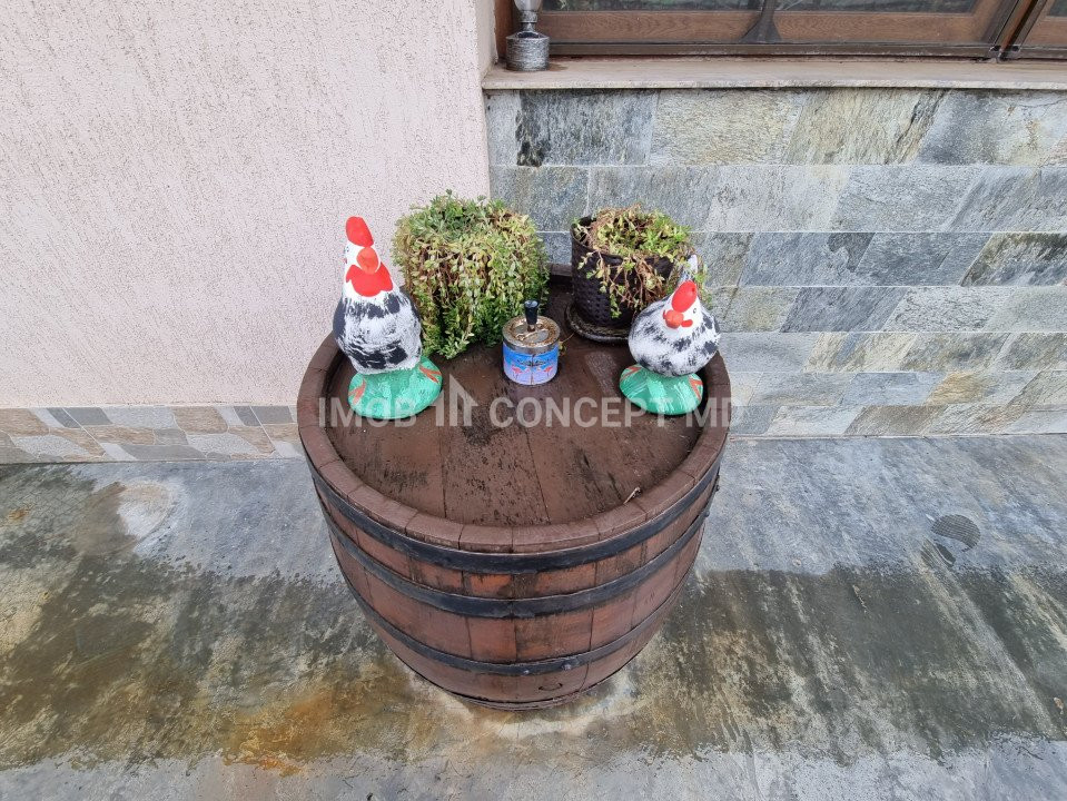 Dotari: gresie, faianta, parchet laminat, tamplarie PVC cu geamuri termopan, usi din lemn de stejar in interior si din PVC, usa din PVC la intrare, centrala termica pe curent, calorifere din aluminiu, mobilier, electrocasnice, aparate aer conditionat-5 buc, sistem camere de luat vederi, alarma, hidrofor, fosa septica si decantor, puturi la 14mp .